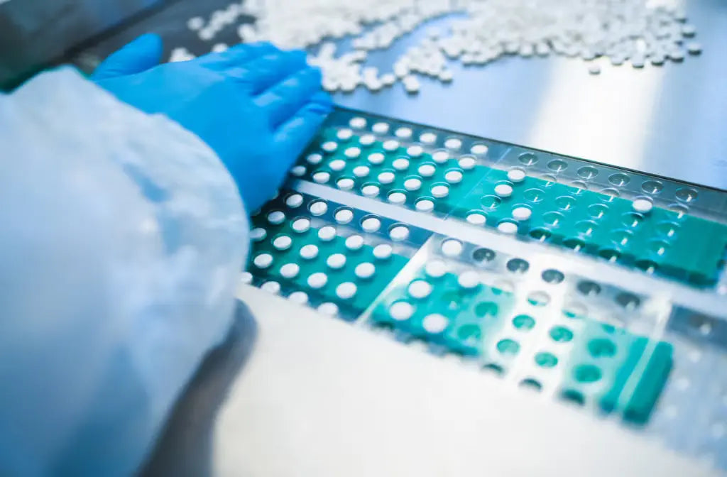We always start production by carefully checking, documenting and testing the raw materials. After that, everything is weighed, sieved and mixed. The finished mass is tableted, encapsulated or filled into portion bags under careful control and monitoring. Tablets and capsules are packed in boxes or blister packs. The quality is carefully studied throughout the entire process and according to all specifications and quality standards.